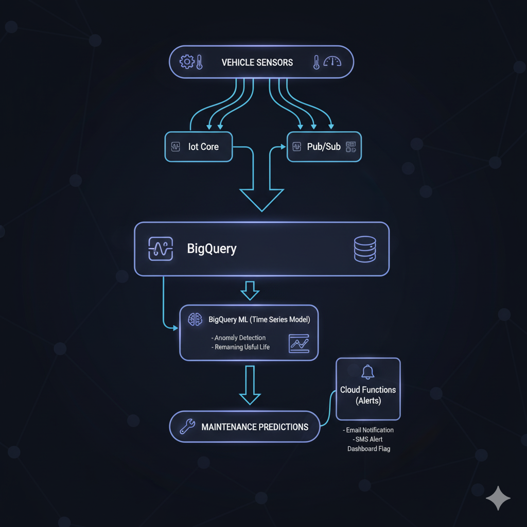 This article presents a complete Proof of Concept (POC) architecture for implementing 10 critical AI capabilities in fleet management using GCP's native services. We'll cover everything from no-code solutions using BigQuery ML to advanced agentic AI with Vertex AI, traditional classification models, and time series forecasting.