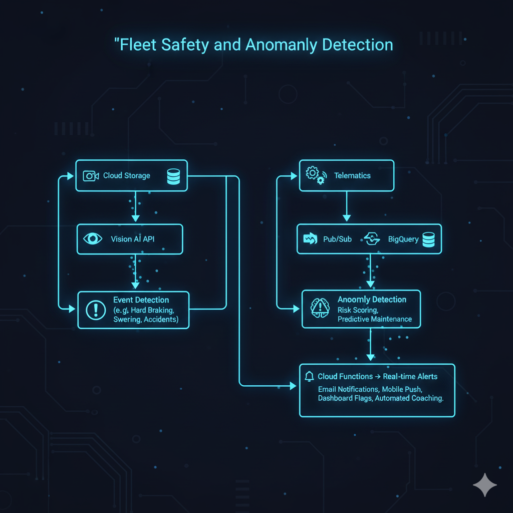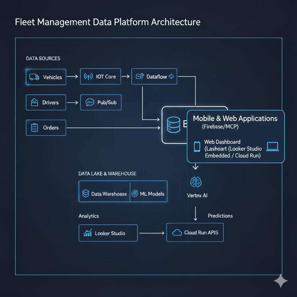 Modern fleet management faces unprecedented challenges: rising fuel costs, driver safety concerns, maintenance unpredictability, and the constant pressure to optimize routes in real-time. Artificial Intelligence offers transformative solutions to these challenges, and Google Cloud Platform (GCP) provides a robust, unified ecosystem to implement them.